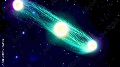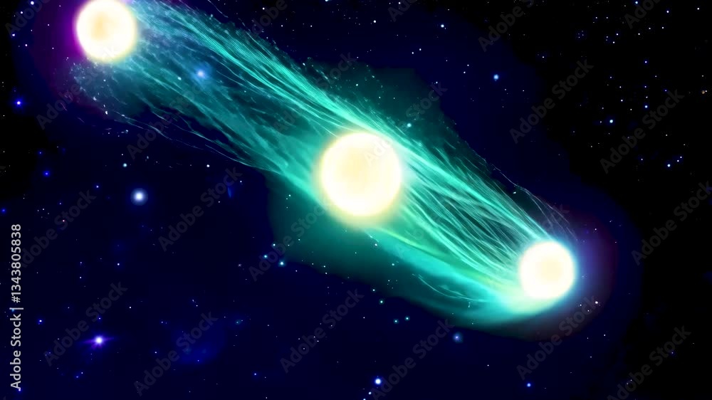 Stunning space scene featuring three glowing stars with cosmic streamsWall mural