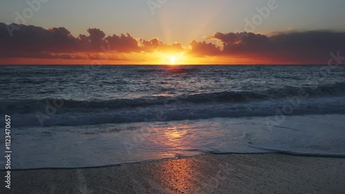The watermark will not be included on Wall mural.: Stunning sunset over sea with vibrant colors reflecting on the water at the beach, 4k