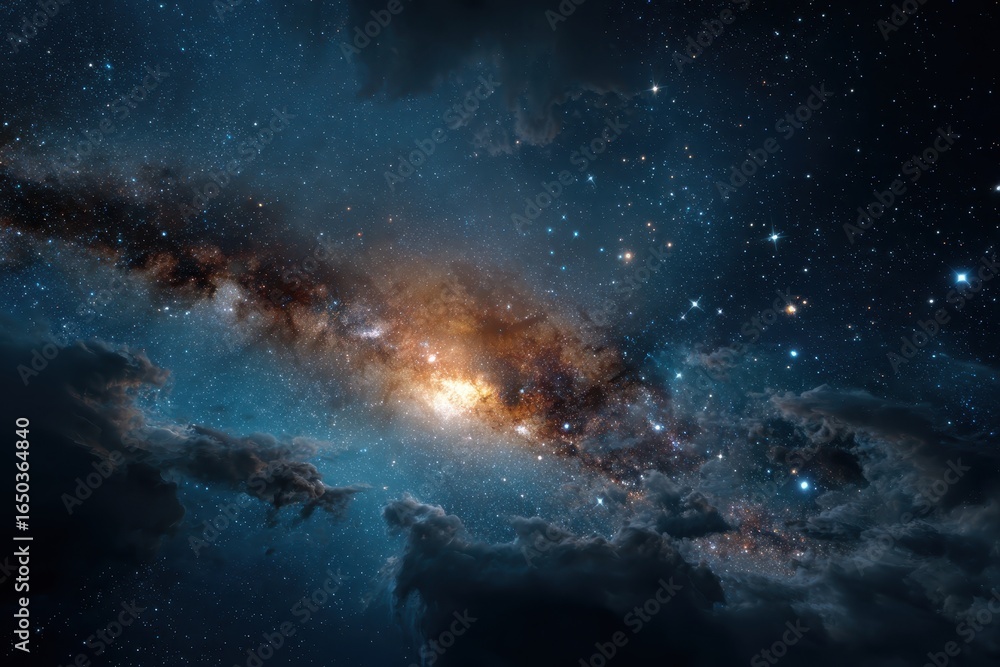 The watermark will not be included on Wall mural.: Stunning view of a colorful universe filled with stars and celestial formations illuminating the nig
