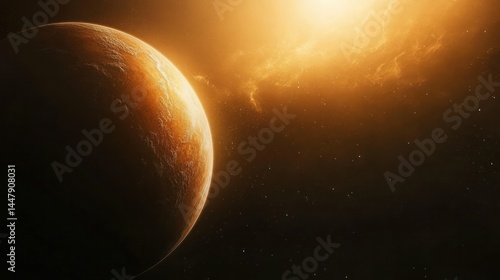 Wall mural stunning view of a distant planet with a glowing atmosphere and cosmic clouds in deep space indicati - Wall murals Wall mural stunning view of a distant planet with a glowing atmosphere and cosmic clouds in deep space indicati - Wall murals