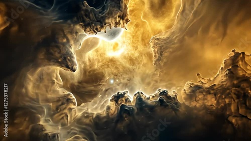 The watermark will not be included on Wall mural.: Stunning view of cosmic clouds illuminated by distant stars in a swirling nebula captured in deep sp