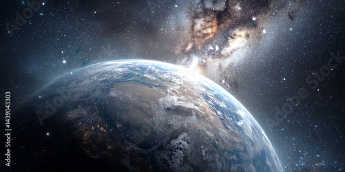 Wall mural stunning view of earth in space surrounded by stars and galactic elements ideal for educational or a