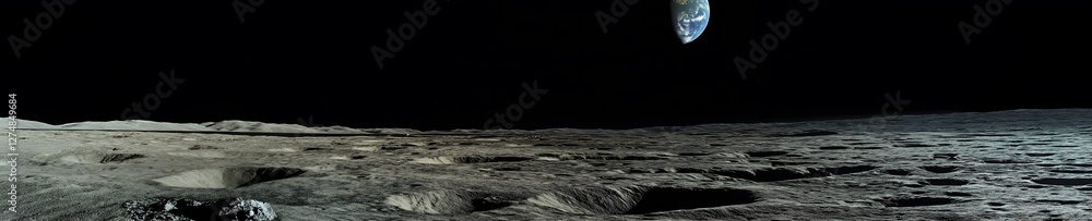 Wall mural : Stunning view of earth rising over the barren lunar surface, captured from space, showcasing the con