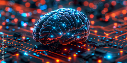 Wall mural : Stunning visualization of a cybernetic brain on a circuit board with glowing connections and futuris