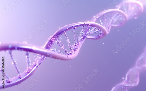 Wall mural : Stylized dna strand floating in lower left corner on solid soft lavender background with wide empty