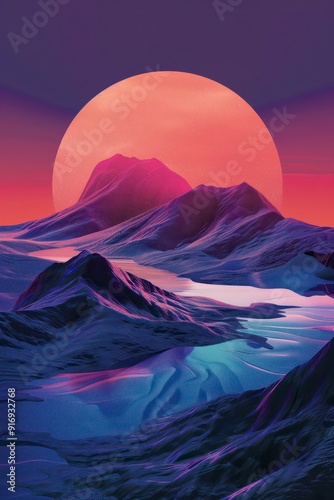 The watermark will not be included on Wall mural.: Stylized generative landscape background with noisy surface and deep colors