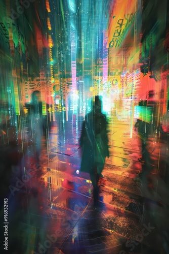 Wall mural : Stylized generative poster background with noisy surface and deep colors