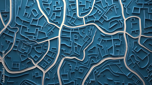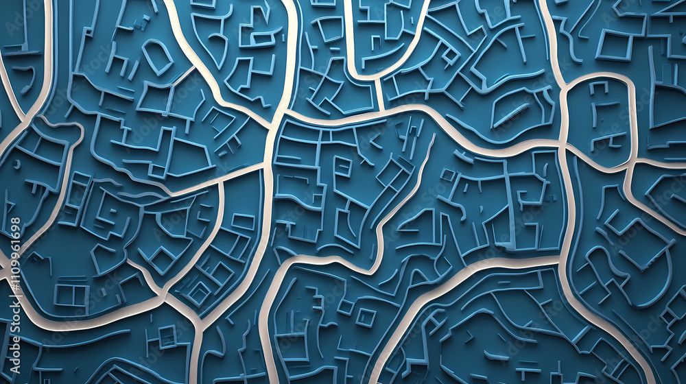 The watermark will not be included on Wall mural.: Stylized street map design featuring white lines on an abstract blue background illuminated by two l