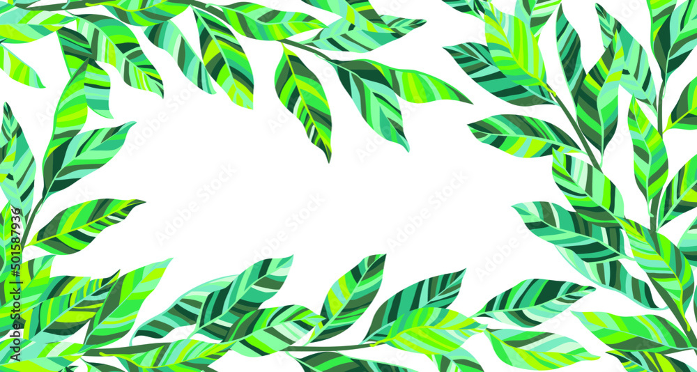 The watermark will not be included on Wall mural.: Stylized tree branch frame with green leaves summer vector illustration - abstract botany tree branch