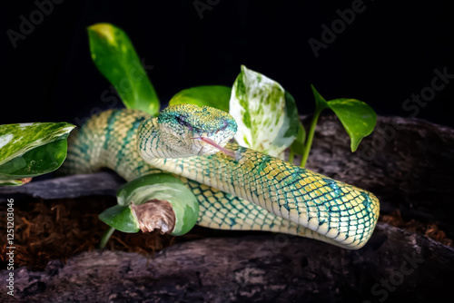 Subannulatus borneo viper snake isolated in a branch of tree with dark or bright backgroundWall mural