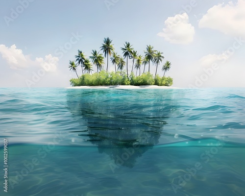 Wall mural : Submerged tropical island with visible palm trees global warming concept