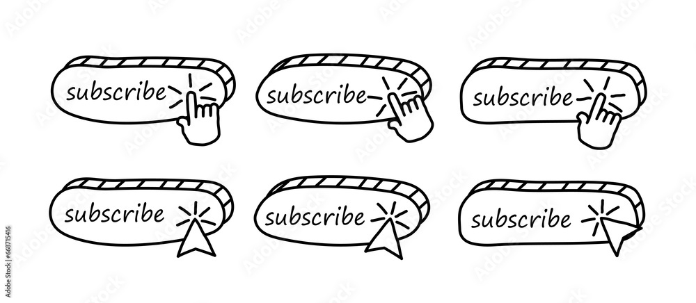 Wall mural subscribe button sign. pressing the button with a finger, forefinger. set of buttons for website, pr - Wall murals Wall mural subscribe button sign. pressing the button with a finger, forefinger. set of buttons for website, pr - Wall murals
