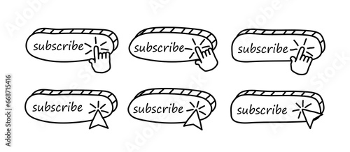 Subscribe button sign - pressing the button with a finger, forefinger - set of buttons for website, prWall mural