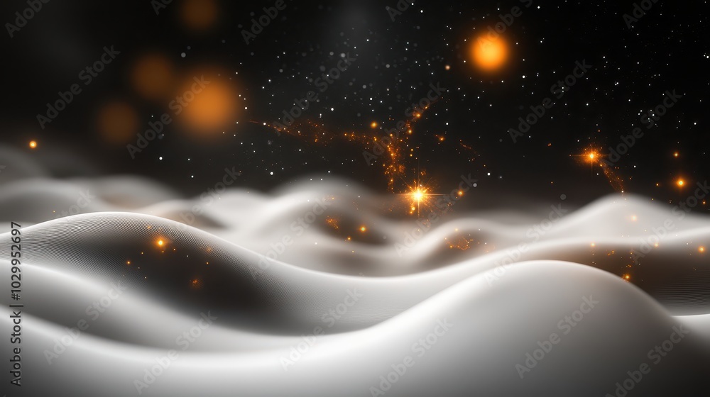 The watermark will not be included on Wall mural.: Subtle galaxy background with a focus on a few twinkling stars and gentle swirls of cosmic clouds -