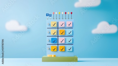 Wall mural successful project management timeline concept. 3d checklist display with colorful markers against a - Wall murals Wall mural successful project management timeline concept. 3d checklist display with colorful markers against a - Wall murals