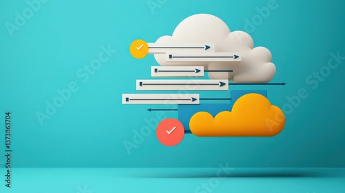 Wall mural successful project management timeline concept. digital illustration of clouds with arrows and check - Wall murals Wall mural successful project management timeline concept. digital illustration of clouds with arrows and check - Wall murals