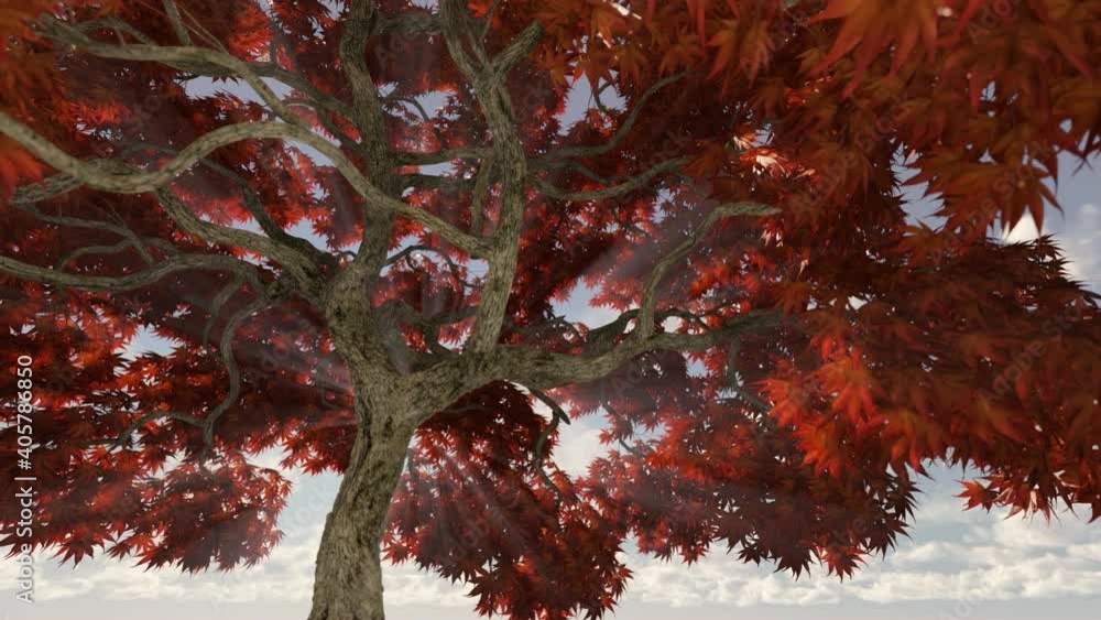 Wall mural sun and sunbeams breaking through a large japanese maple tree
