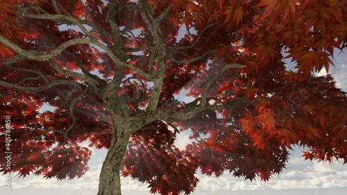 The watermark will not be included on Wall mural.: Sun and sunbeams breaking through a large japanese maple tree