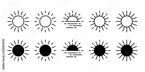 The watermark will not be included on Wall mural.: Sun icons collection - set of black vector line elements on white background -