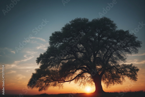 The watermark will not be included on Wall mural.: Sun setting behind a large tree