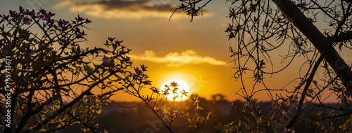 The watermark will not be included on Wall mural.: Sun setting through tree branches