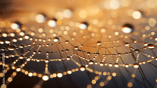 The watermark will not be included on Wall mural.: Sun shining through the net of web , water drops on net , net with water drops on it