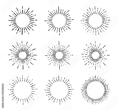 Wall mural sunburst, explosion effects, vintage doodle isolated on white background