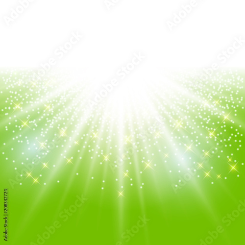 Wall mural sunlight effect sparkle on green background with glitter copy space.
