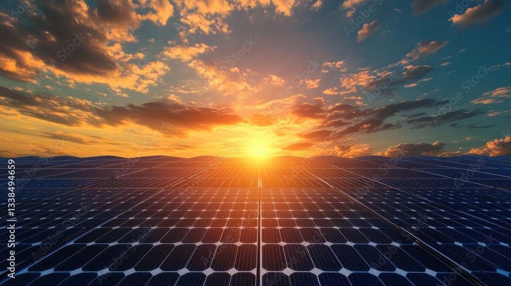 The watermark will not be included on Wall mural.: Sunlight reflecting off large-scale solar panel array