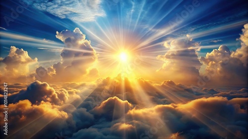 Wall mural : Sunlight shining through clouds symbolizing hope and the presence of a higher power, sunlight, glist
