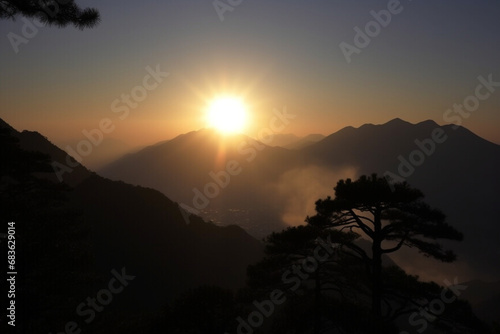 Wall mural sunrise in the mountain generative ai - Wall murals Wall mural sunrise in the mountain generative ai - Wall murals