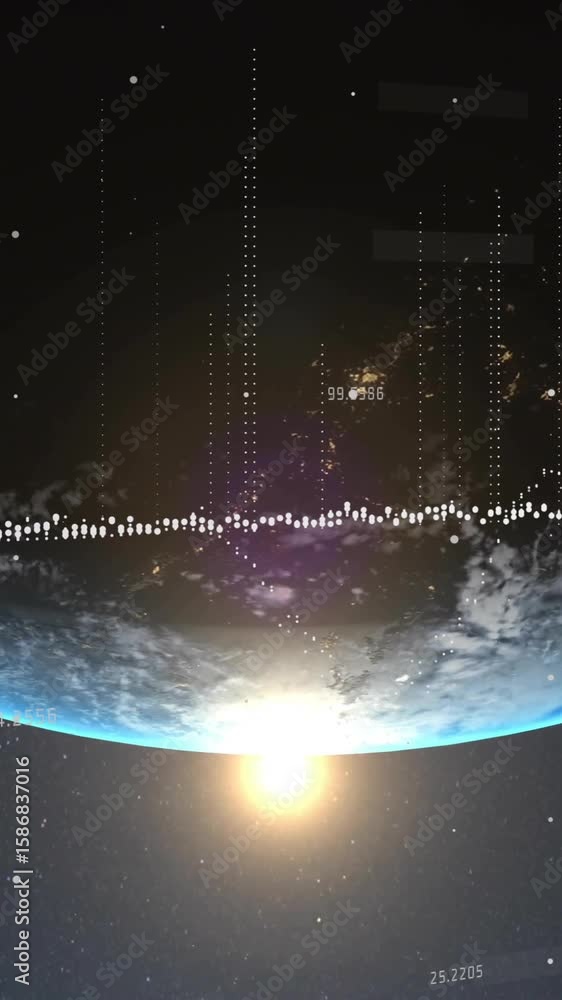 Wall mural sunrise over earth, data points and coordinates animating in space