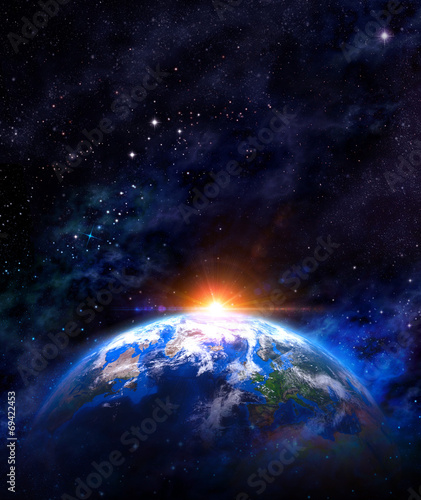 Wall mural sunrise over earth in outer space - Wall murals Wall mural sunrise over earth in outer space - Wall murals