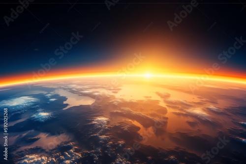 The watermark will not be included on Wall mural.: Sunrise over planet view from space - generative ai