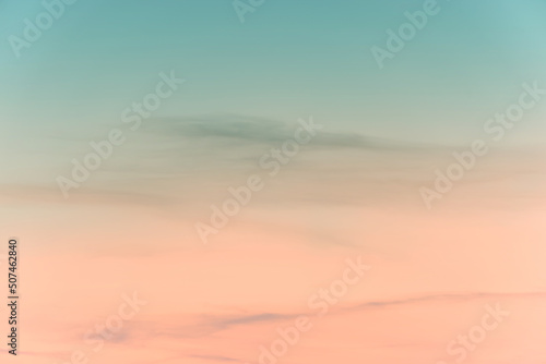 Wall mural sunset background. sky with soft and blur pastel colored clouds. gradient cloud on the beach resort.