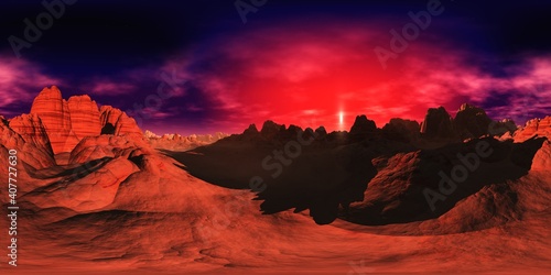 Sunset on mars - hdri - equidistant projection - spherical panorama - panorama 360 - environment map, 3dWall mural