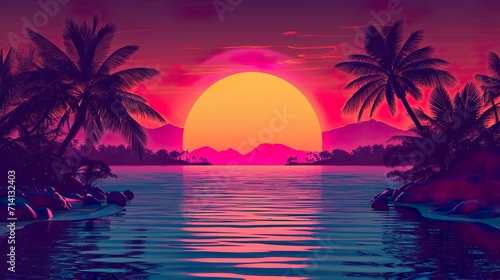The watermark will not be included on Wall mural.: Sunset on the beach 80's retro made with ai generative technology