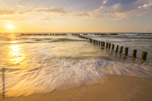 The watermark will not be included on Wall mural.: Sunset over the sea beach