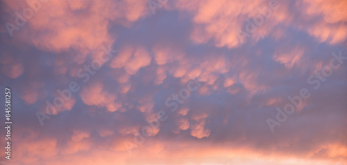 The watermark will not be included on Wall mural.: Sunset sky background with soft mammatus clouds pink and purple