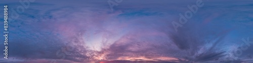 Wall mural : Sunset sky with bright glowing pink cumulus clouds - seamless spherical hdr 360 panorama - full zenith