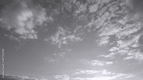 Wall mural sunset time and clear blue sky with some white fluffy clouds. black and white real time 4k video foo