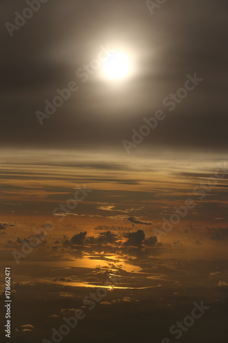 Wall mural : Sunset white cloud sky at high level attitude, view from window airplane