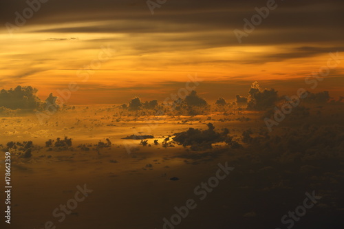 Wall mural sunset white cloud sky at high level attitude, view from window airplane