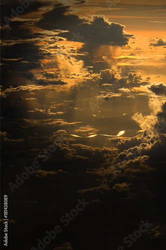 Sunset white cloud sky at high level attitude, view from window airplaneWall mural