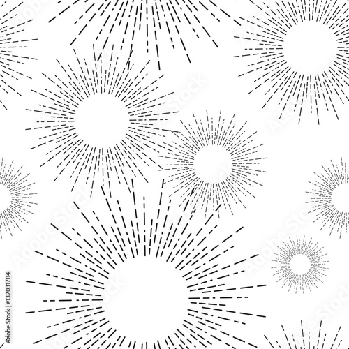Wall mural : Sunshine rays seamless pattern in vintage style - sunburst linear drawing texture - continuous backgro