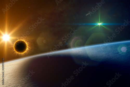Wall mural supermassive extraterrestrial life form orbiting planet earth and makes local solar eclipse - Wall murals Wall mural supermassive extraterrestrial life form orbiting planet earth and makes local solar eclipse - Wall murals