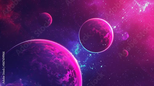 The watermark will not be included on Wall mural.: Surreal alien planet and space abstract background with retro neon circles, psychedelic design in vi