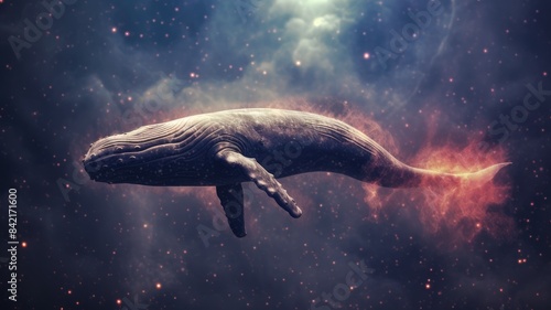 The watermark will not be included on Wall mural.: Surreal art design of a whale floating in space with a cosmic background and starry sky - digital art