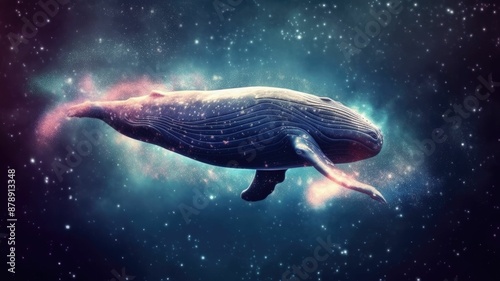 The watermark will not be included on Wall mural.: Surreal art design of a whale floating in space with a cosmic background and starry sky - digital art