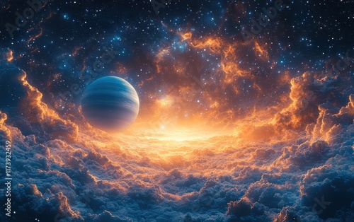 The watermark will not be included on Wall mural.: Surreal cosmic scene with planets and stars in the vast universe